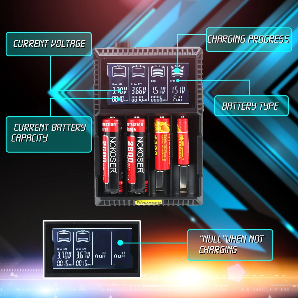Original 4 Slots LCD Display Smart Battery Charger For iFePO4 NiMH NiCd AA/AAA Li-ion 18650/17670/18350/16340/14500/17500/22650
