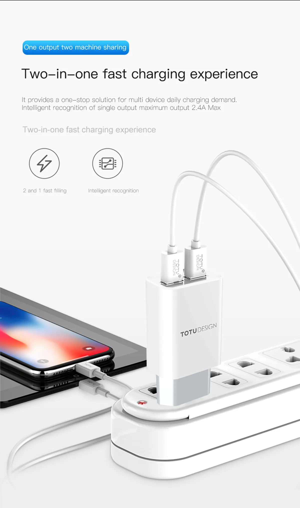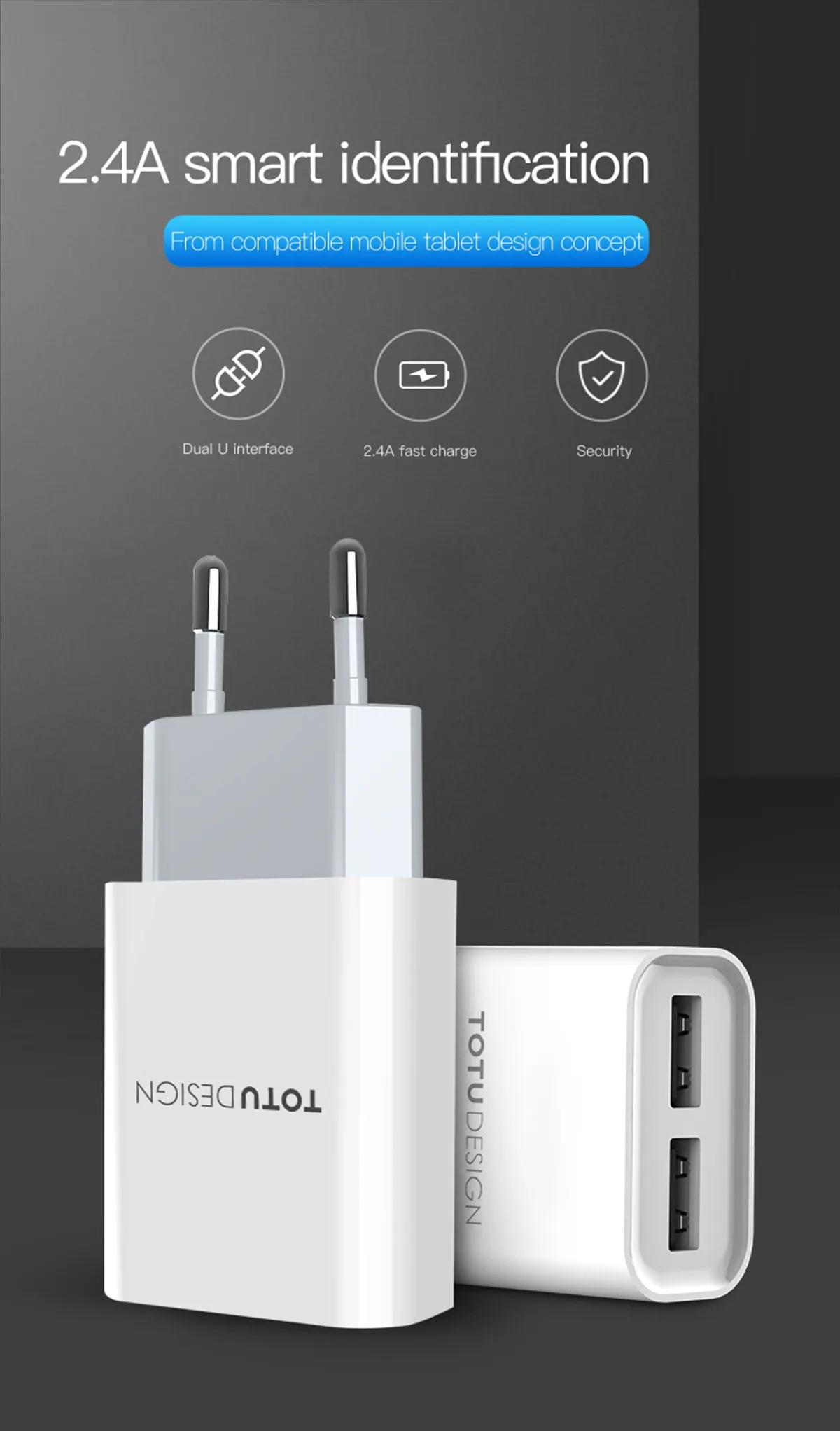 Best Price - TOTU Dual USB Charger For iPhone Mobile Phone EU Plug Charger 2.4A Fast Wall Charger Adapter For Samsung Xiaomi tablet Charger Wonderfull
