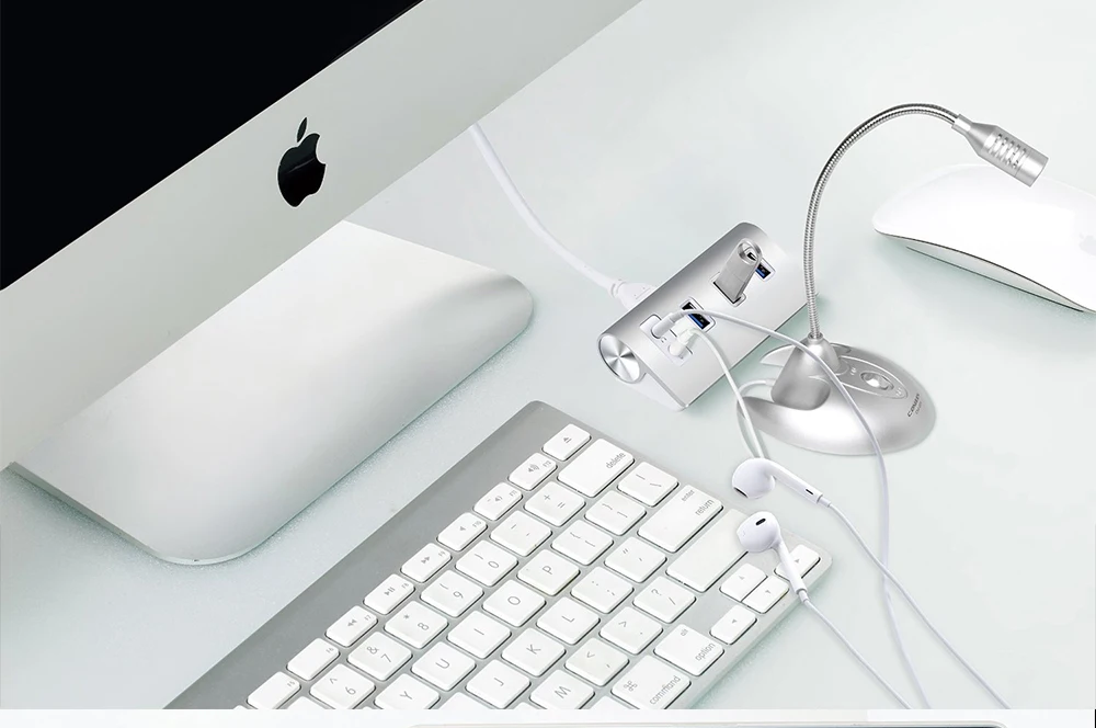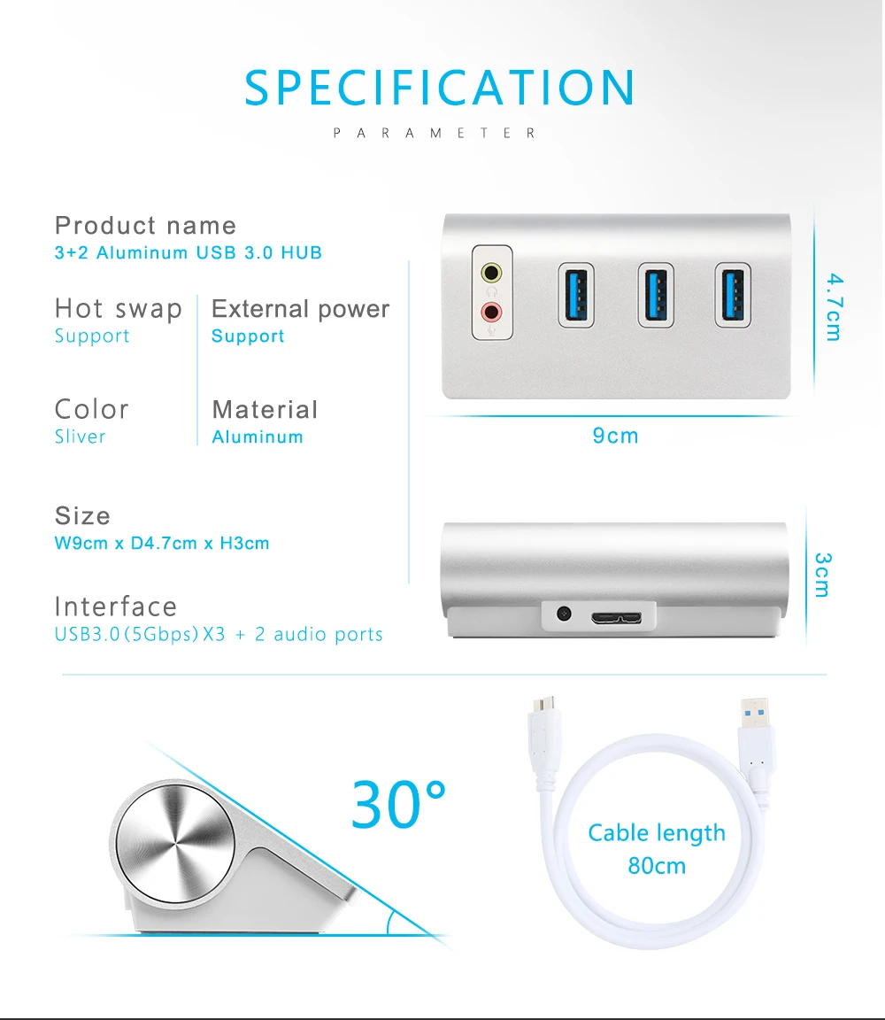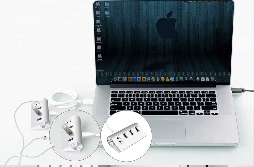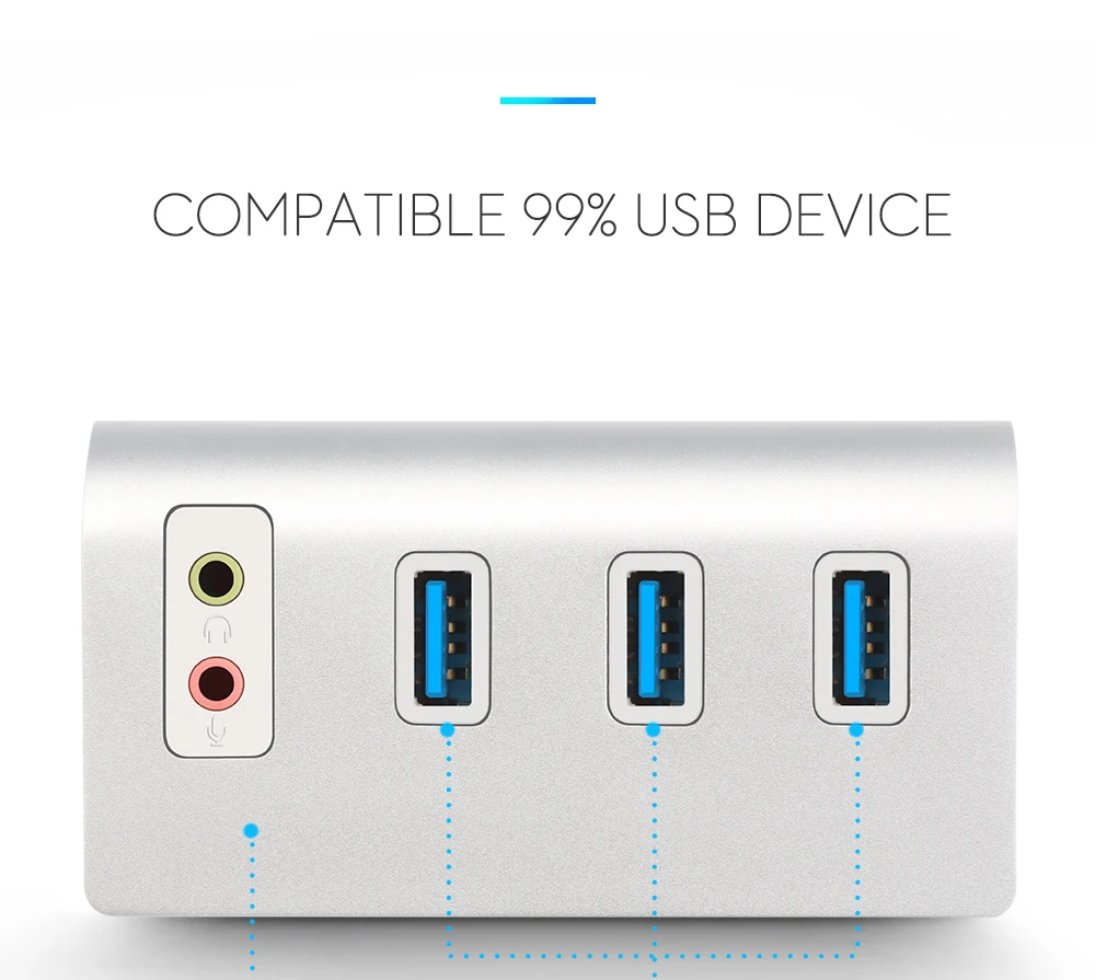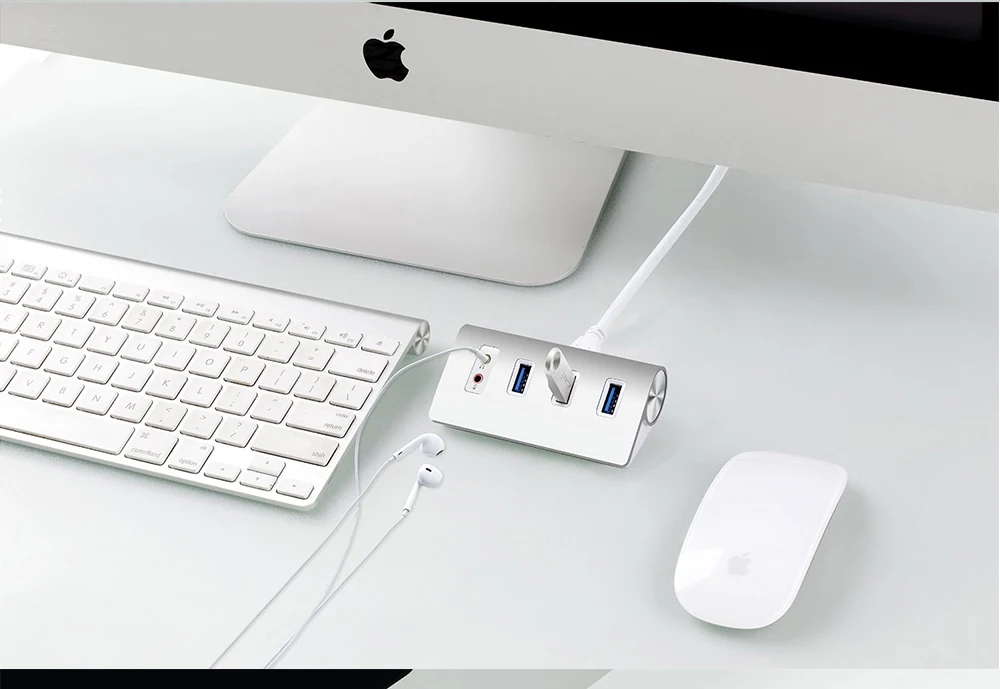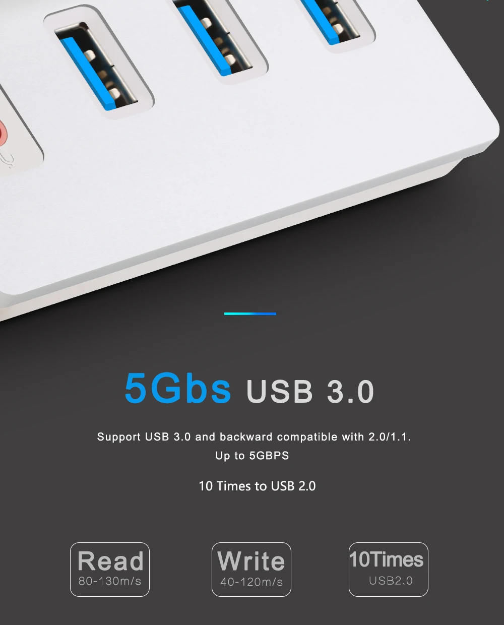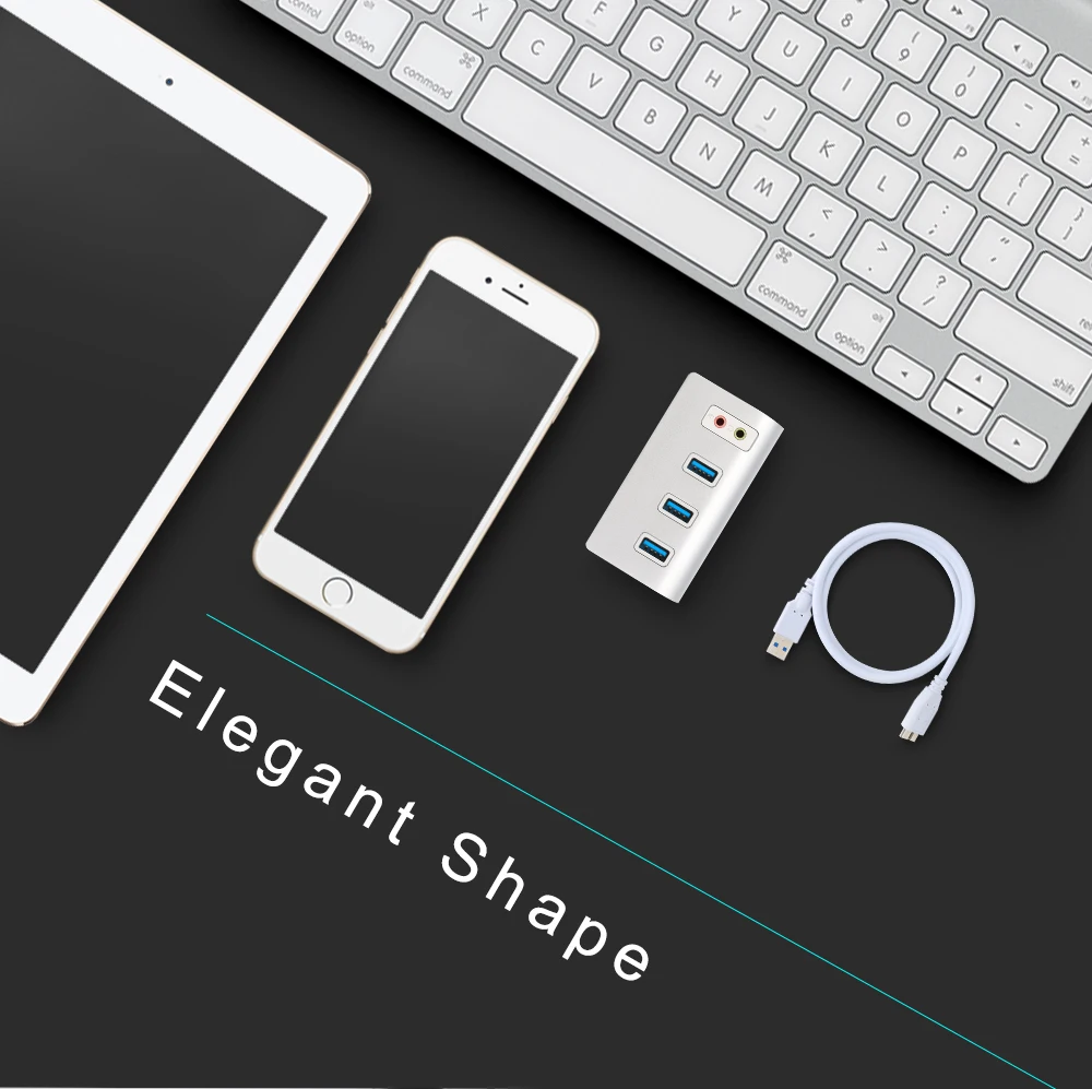 Cateck USB 3.0 3-Port Hub with Stereo Sound Adapter Combo is designed especially for laptops, tablets, and ultrabooks and expands one USB 3.0 high-speed port into three easily.