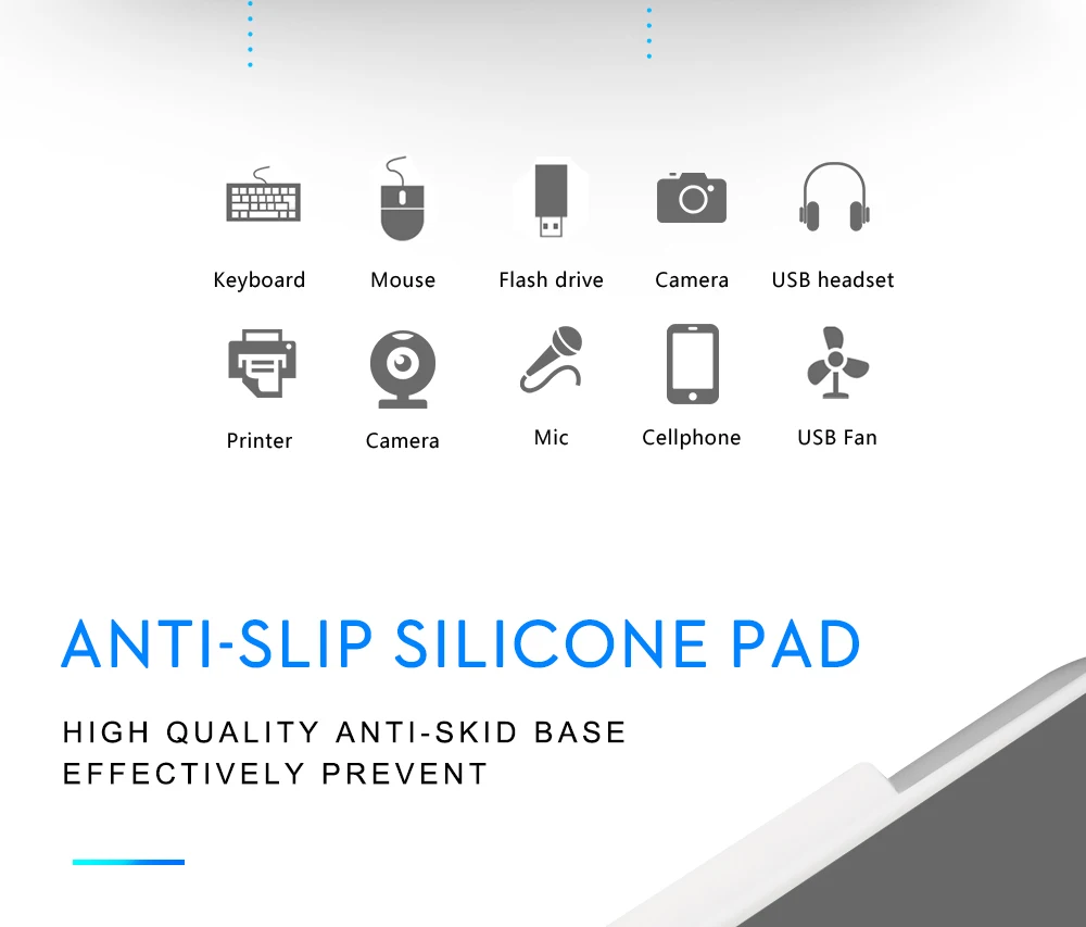 For stable operation, devices connected to this hub should not exceed a combined current of 5V 900mAh.