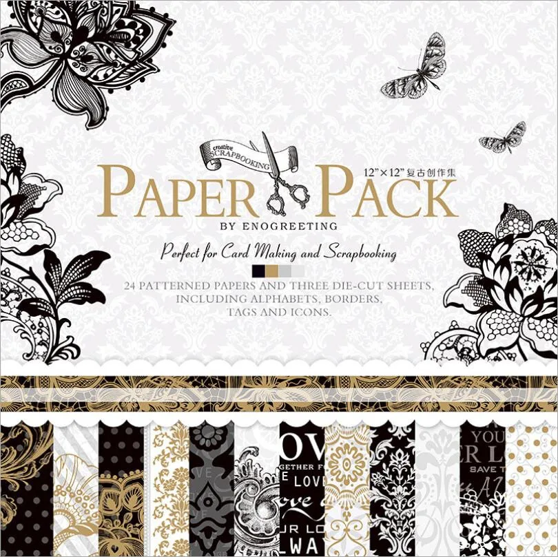 Cheap - ENO Greeting 12 inch Vintage Paper Pack For Scrapbooking and Cardmaking Creative Metaillic Scrapbook Paper Excellent