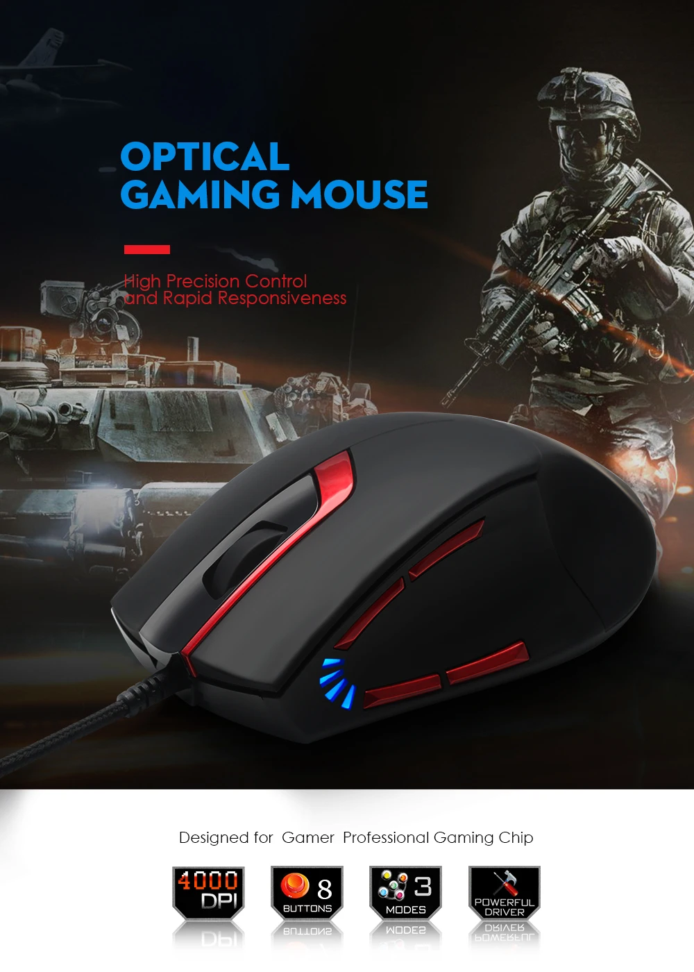 Low Price - ROCKETEK Gaming Mouse 4000 DPI 8 Buttons USB Ergonomic Design For Desktop Computer Accessories Programmable Mouse Gamer LOL PC Cheap