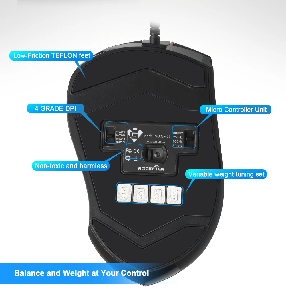 Cheap - ROCKETEK Gaming Mouse 4000 DPI 8 Buttons USB Ergonomic Design For Desktop Computer Accessories Programmable Mouse Gamer LOL PC Very Recommended