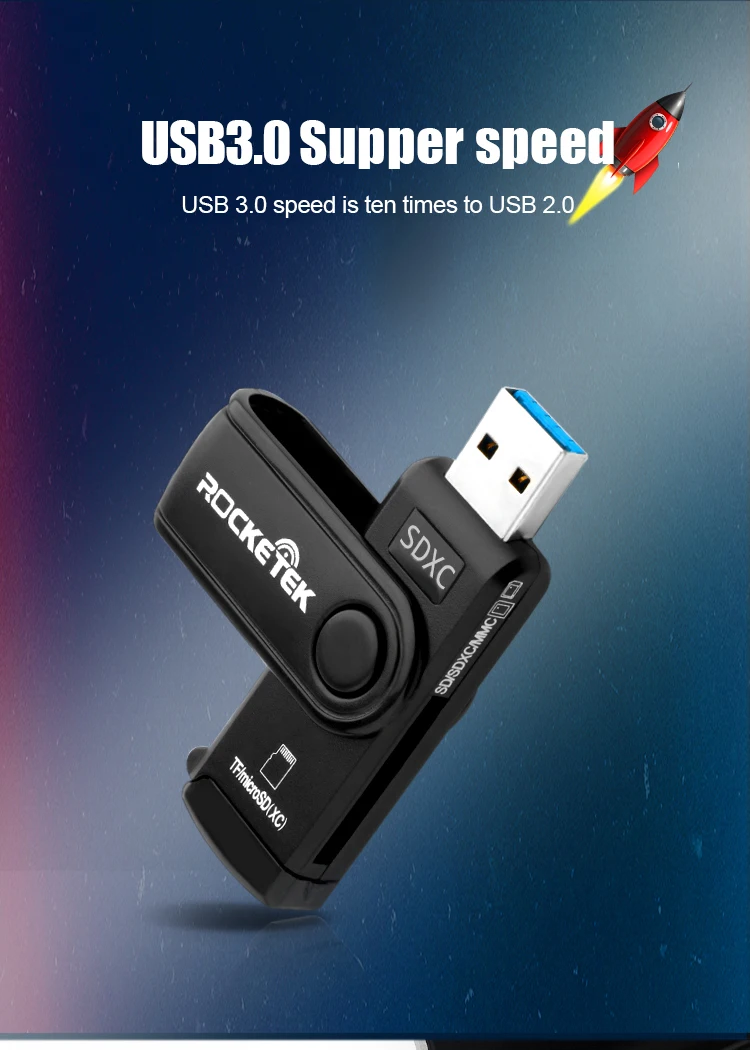 The Rocketek USB 3.0 SD / Micro SD Card Reader is a great option for anyone looking for an easy way add support for the most common storage media types used in common digital cameras, MP3 players, and mobile phones,etc.