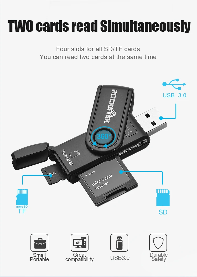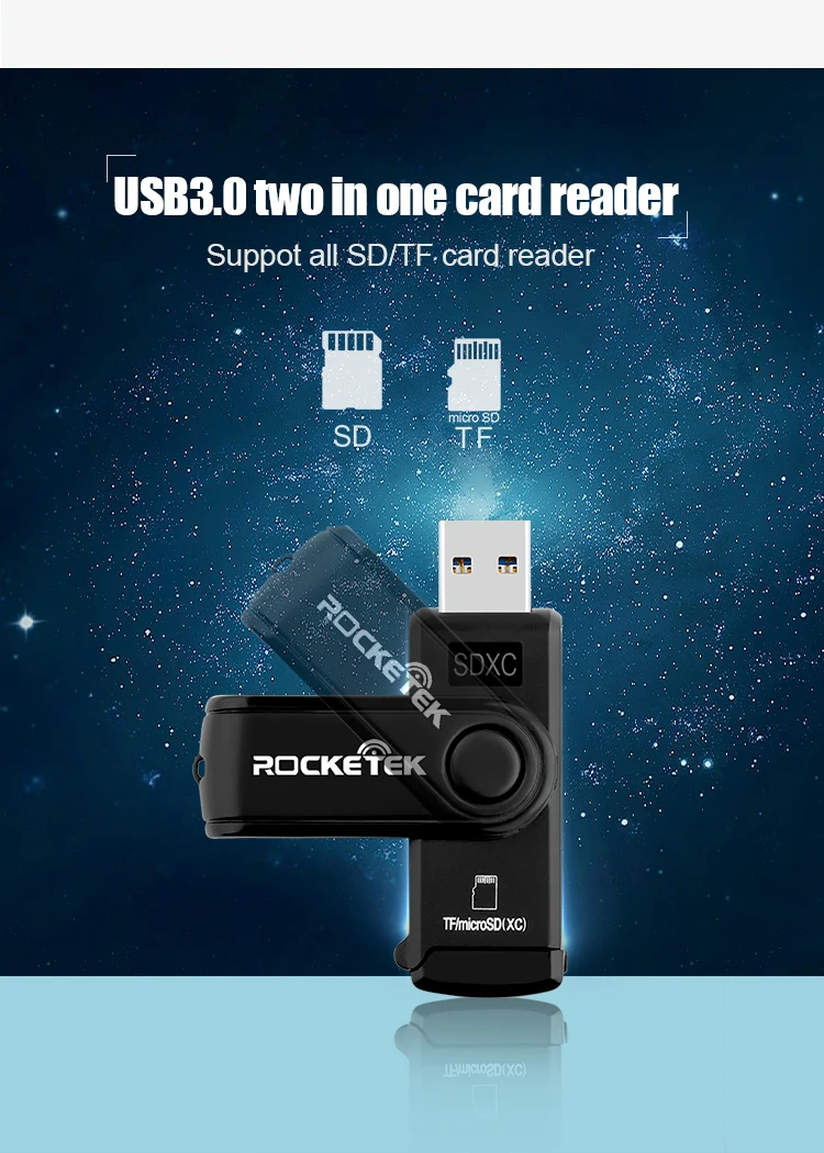 Special Offers - Rocketek same time read 2 cards usb 3.0 multi 2 in 1 memory card reader adapter for SD/TF micro SD computer laptop accessories Wonderfull