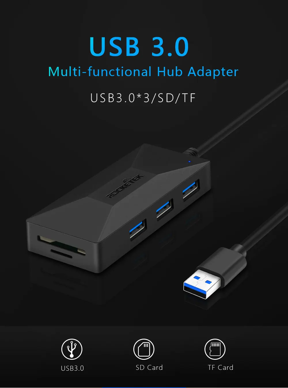 USB 3.0 Hub with SD/TF Card Reader