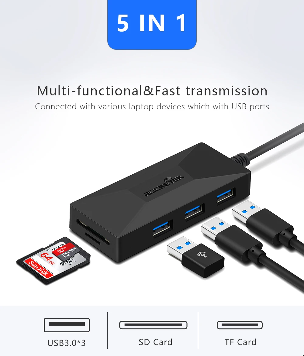 Price Comparisons For - Rocketek high speed multi USB 3.0 HUB Card Reader 3 port adapter splitter SD TF for MacBook Air computer PC laptop accessories Special Price