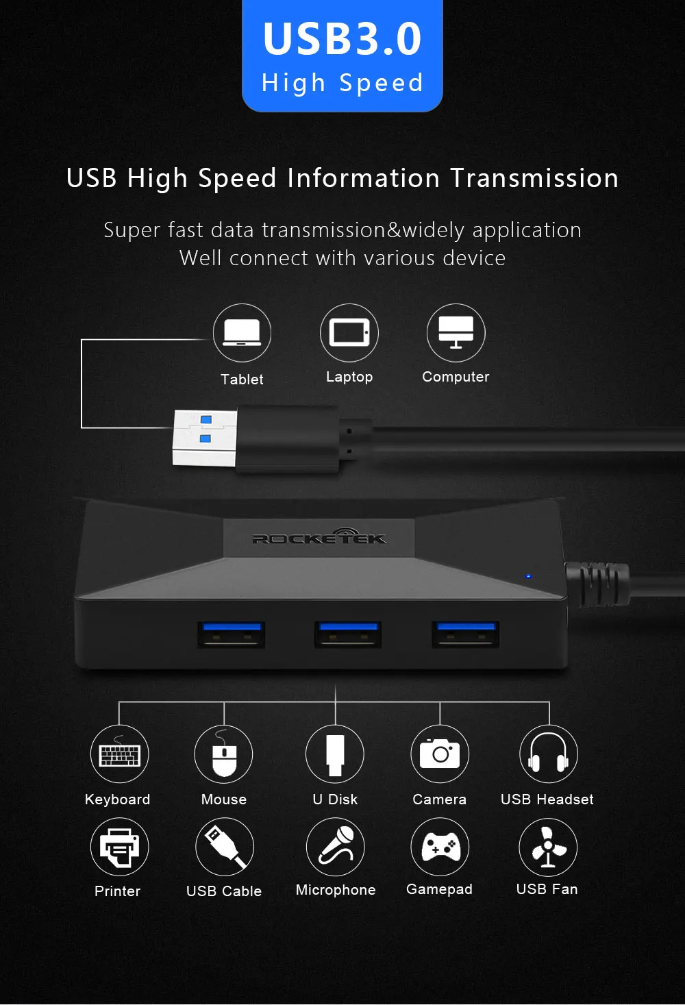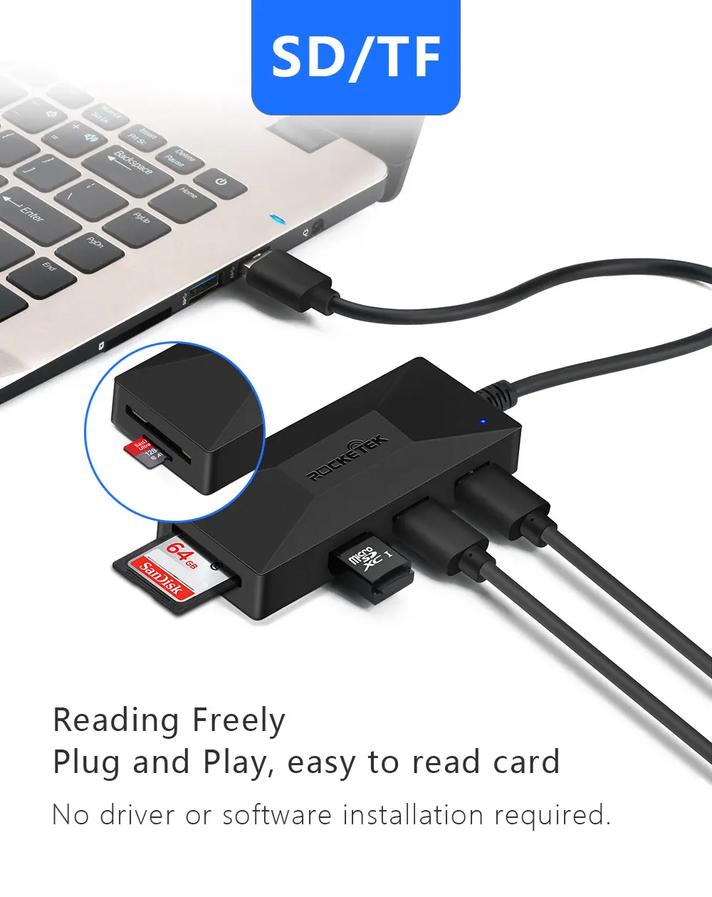 •USB 3.0 Hub with SD/TF Card Reader