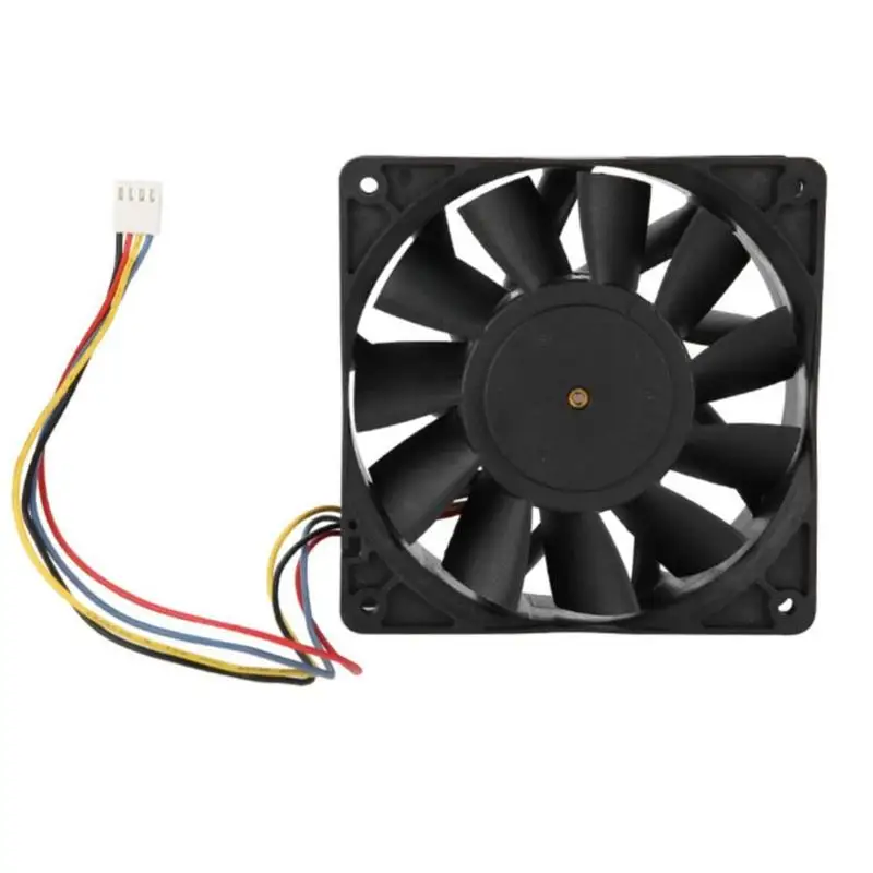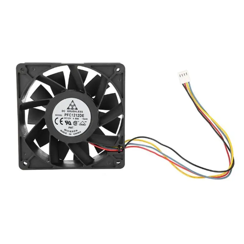 Cooling Fan PFC1212DE 5000RPM DC 12V 4.8A Ball Bearing Air Cooler Radiator for CPU Ant S7 S9 L3 T9 M1 Specification: Model: PFC1212DE Size: 120*120*38mm/4.72*4.72*1.49'' Voltage: DC12V Air volume: 252.85CFM (7.16m3/min) Wind pressure: 1.412 in H2O (351.7 Pa) Weight: 0.351kg Noise: 66.5 dBA Power: 57.6W Speed control: support main board PWM speed regulation Speed measurement: support Interface: motherboard 4P+ power big 4D dual power interface Wire length: 35cm Revolutions: 12V 5000 RPM Fan frame: injection molding, PBT + 30% glass fiber + VO flame retardant; Blade: injection molding, PBT + 30% glass fiber + VO flame retardant; Fan rotation: counter clockwise from fan blade direction. Operating temperature: -10℃to + 70 ℃ Storage temperature: -40 ℃ to + 70 ℃ Bearing: high precision ball bearing Power supply range: rated power supply plus or minus 15%; insulation resistance: greater than 500 Mega Withstand voltage: leakage current 0.5mA 500V / 1 minutes Working life: 80000 hours when ambient temperature is 25 ℃ Warm Tips: 1. In the case of PWM speed regulation on the motherboard, the speed regulated to below 10% is 1050 revolutions. 2. 10% ~ 100% of each regulated level fan increases 405 revolutions, due to the motherboard current limit, so less than 5500 revolutions. Note: Please allow 1-3cm differs due to manual measurement. Due to the different display and different light, the picture may not show the actual color of the item. Thanks for your understanding. 1 x Cooling Fan |
